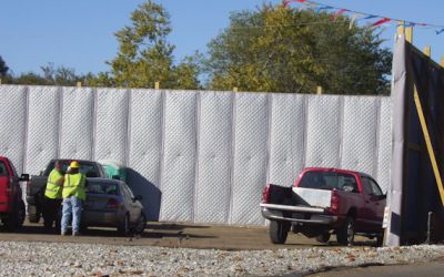 The barrier-backed EXT-N style sound curtain offers the benefits of both sound absorption and noise barrier products in one for outdoor applications. These are typically used as an economic Sound Curtain on temporary construction projects.