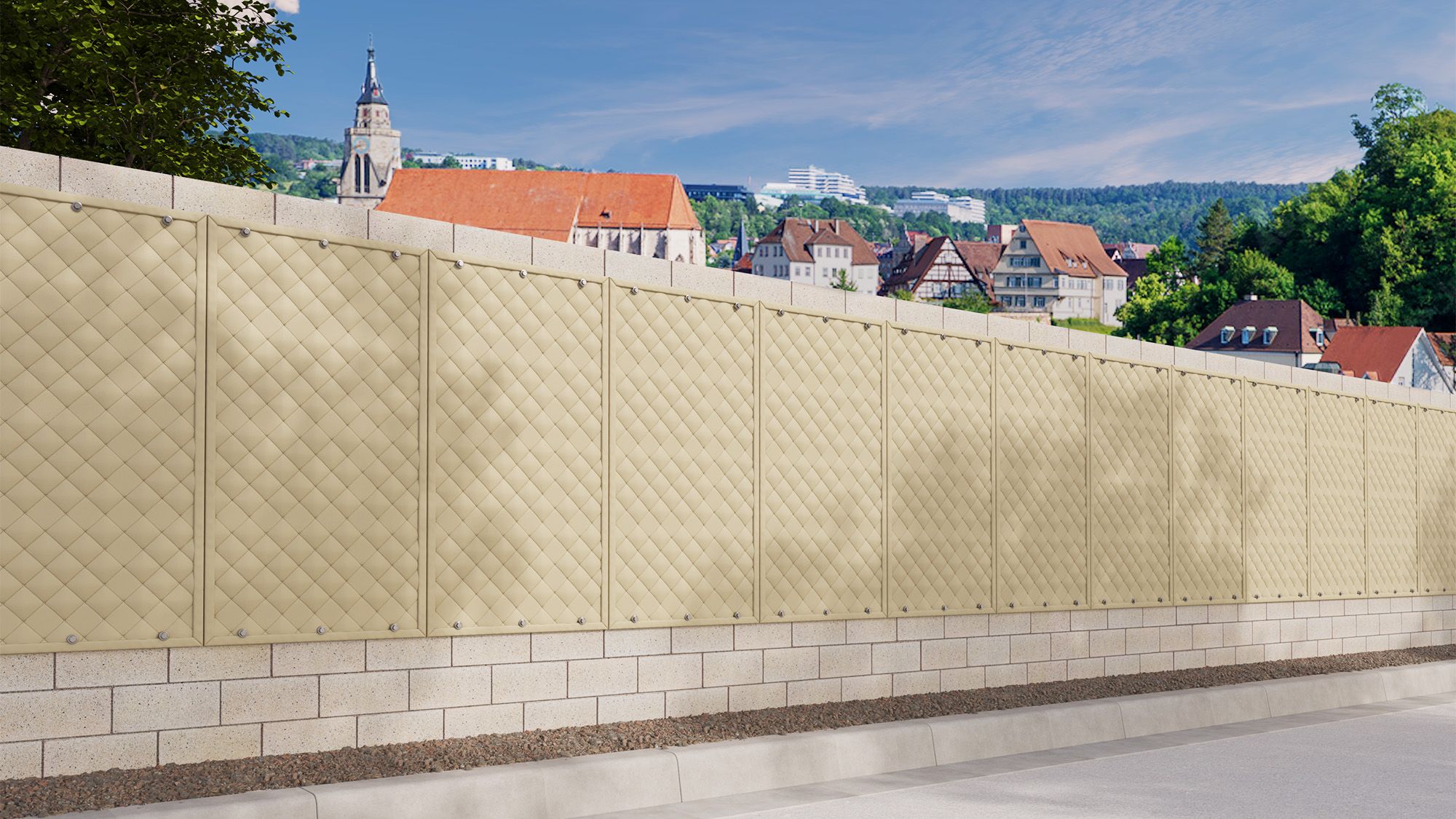- Commonly installed over wood fencing or walls adjacent to a job site or noisy machinery.